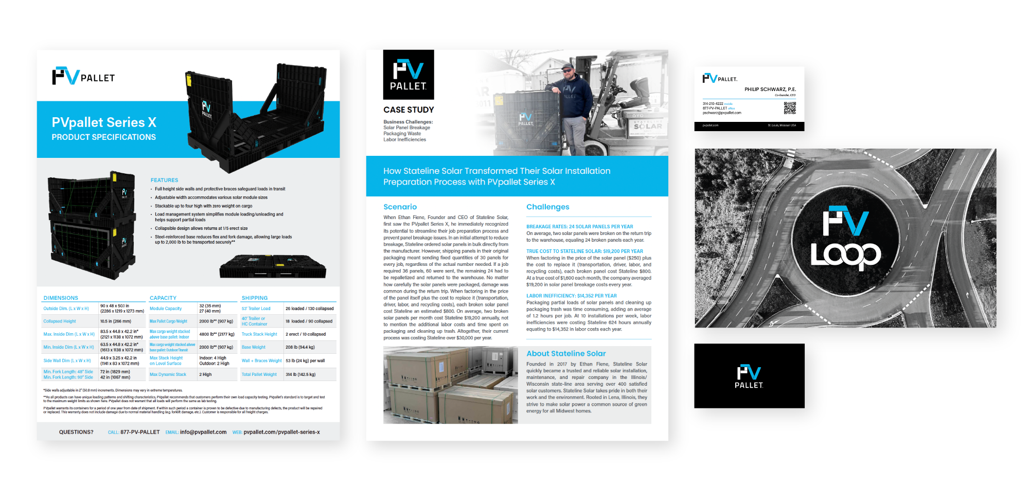 PVpallet had a bold idea: a reusable, recyclable shipping solution for solar modules—something the industry had never seen before. Our challenge was to turn that concept into a credible, compelling brand that could stand out in a crowded marketplace filled with new ideas and fast-moving startups.