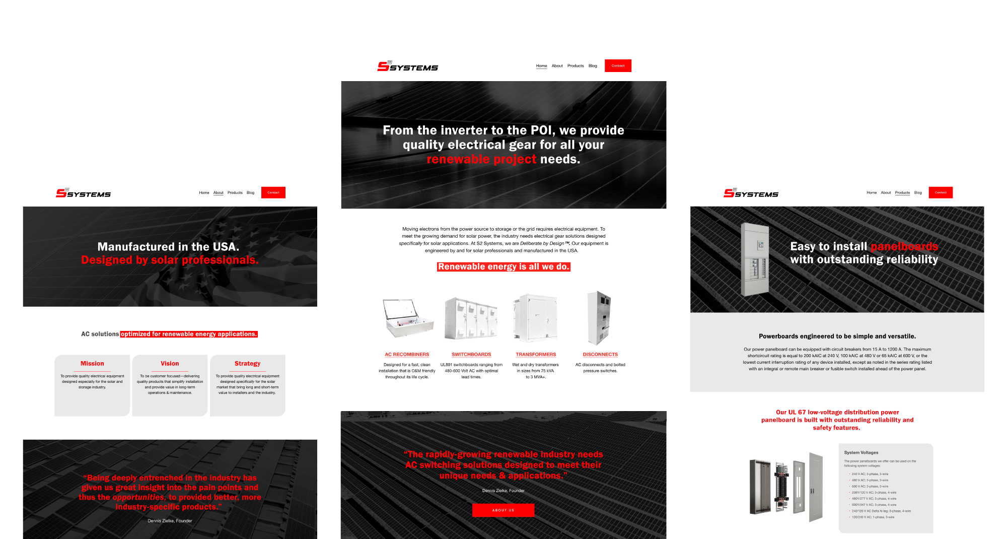 S2 Systems is redefining solar power conversion with electrical equipment designed specifically for the industry. As a startup, they needed a strong, cohesive brand to introduce their game-changing approach to the market. We built their brand from the ground up, creating a modern logo, a clean and informative website, and spec sheets that clearly conveyed their value. To support their industry launch, we also designed an evergreen tradeshow booth backdrop with a clean aesthetic that helps them stand out in the crowded solar marketplace. With a streamlined, professional presence across all touchpoints, S2 Systems is now positioned as a leader in simplifying solar installations, reducing costs, and driving the industry forward.